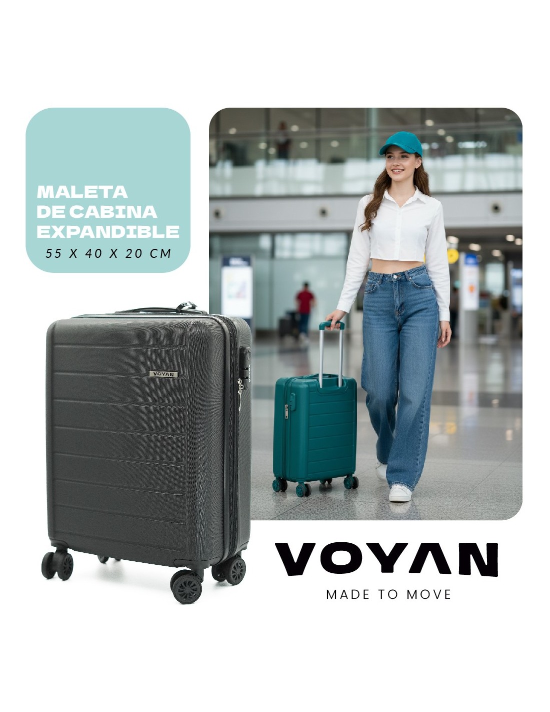 Disponible en cinco colores —negro, gris, azul, granate y verde—, la Voyan SDR es la elección inteligente para viajes de ocio o trabajo: ligera, resistente, práctica y con una excelente relación calidad-precio.
