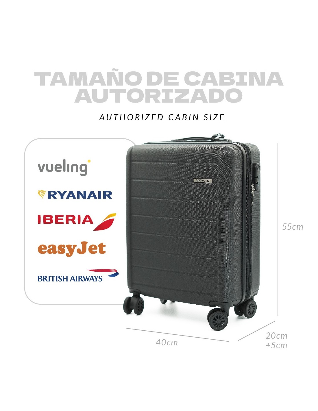 - Apta como maleta de cabina (55x38x20 cm) para Ryanair, Iberia, Vueling, EasyJet y otras aerolíneas europeas.
