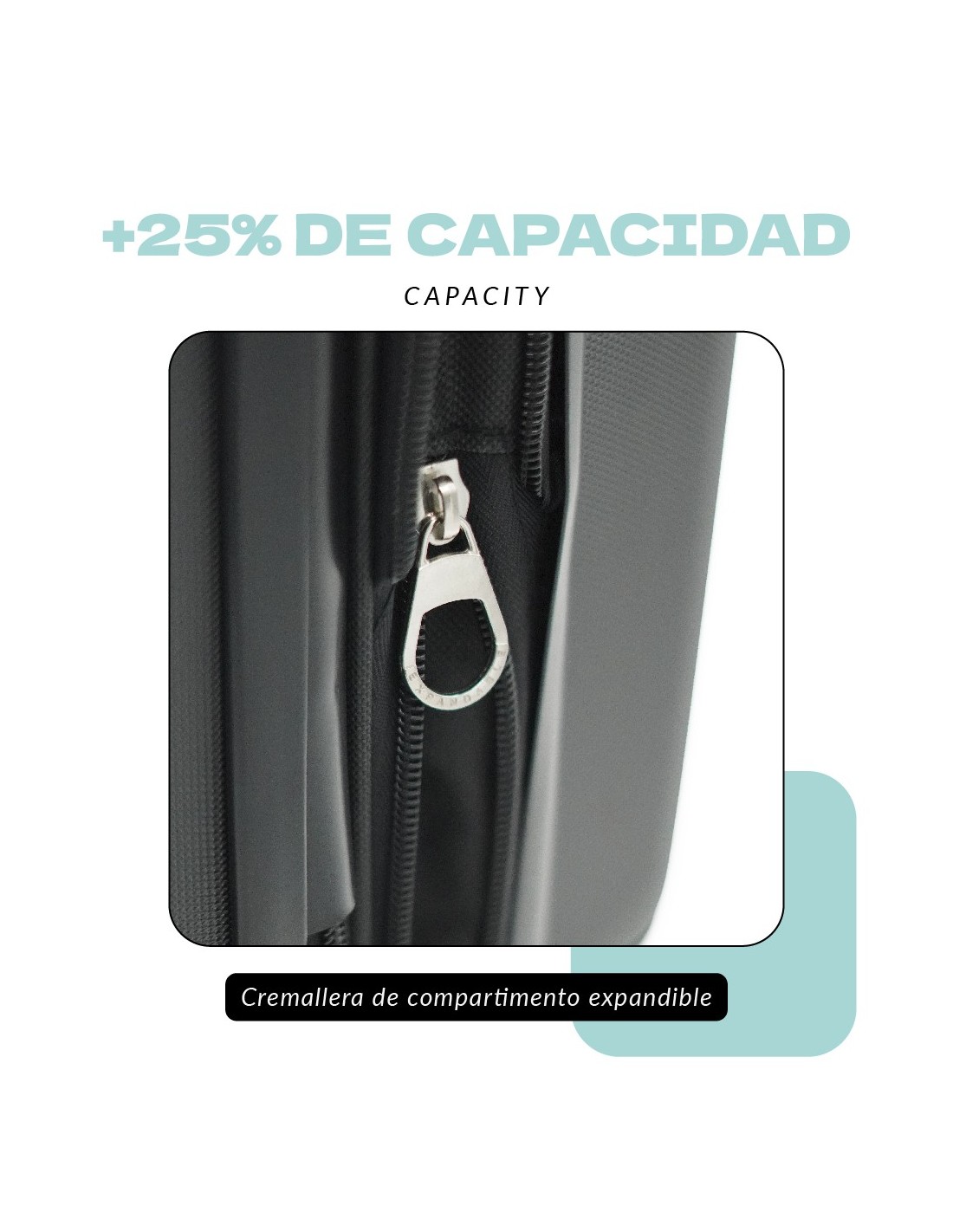 - +25 % de capacidad adicional gracias a su cremallera expandible +5 cm.