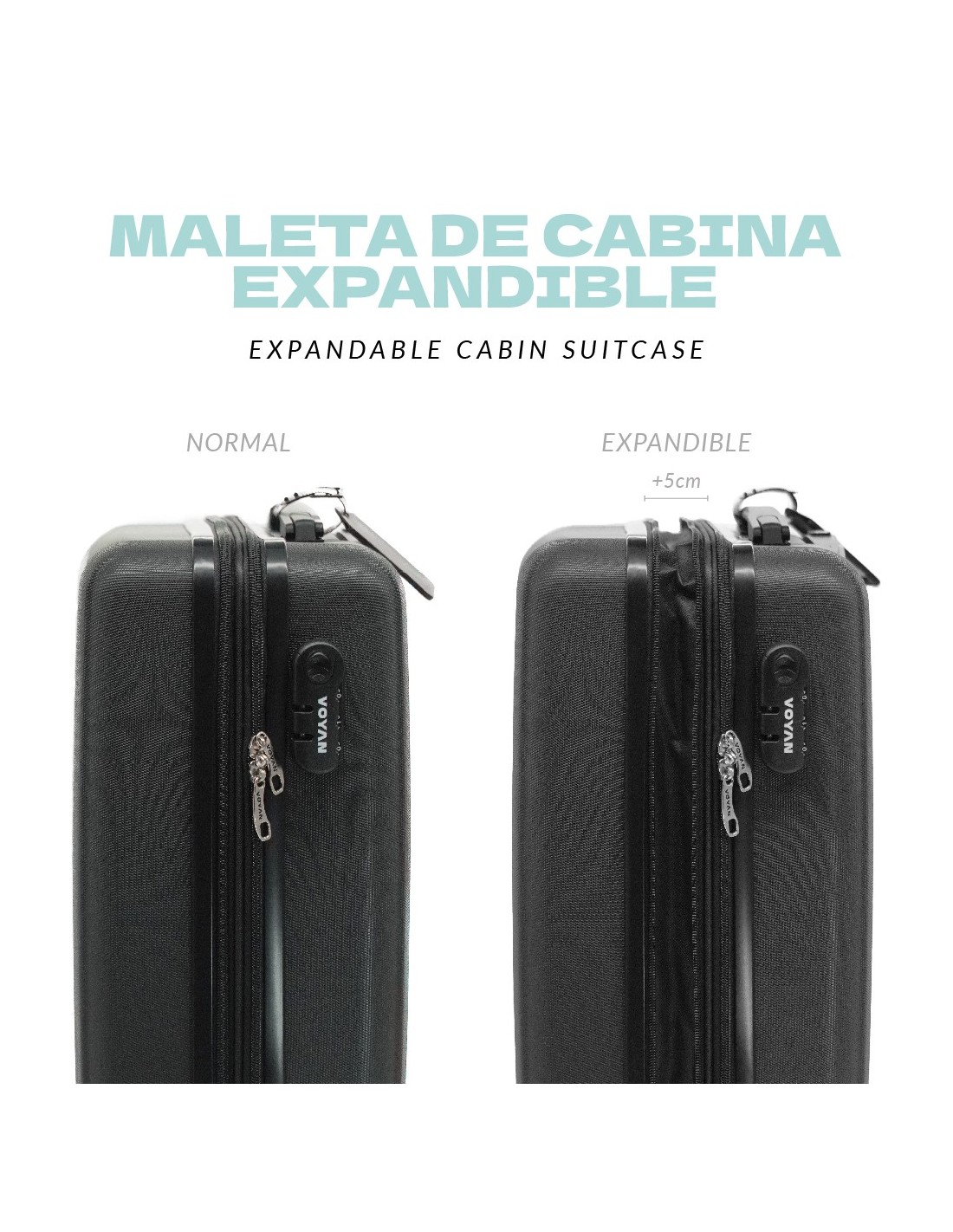 El cierre con combinación integrada mantiene tus pertenencias seguras durante el viaje, mientras que su cremallera expandible +5 cm ofrece hasta un 25% más de capacidad, ideal para compras, viajes más largos o quienes necesitan un extra de espacio sin renunciar a cabina.