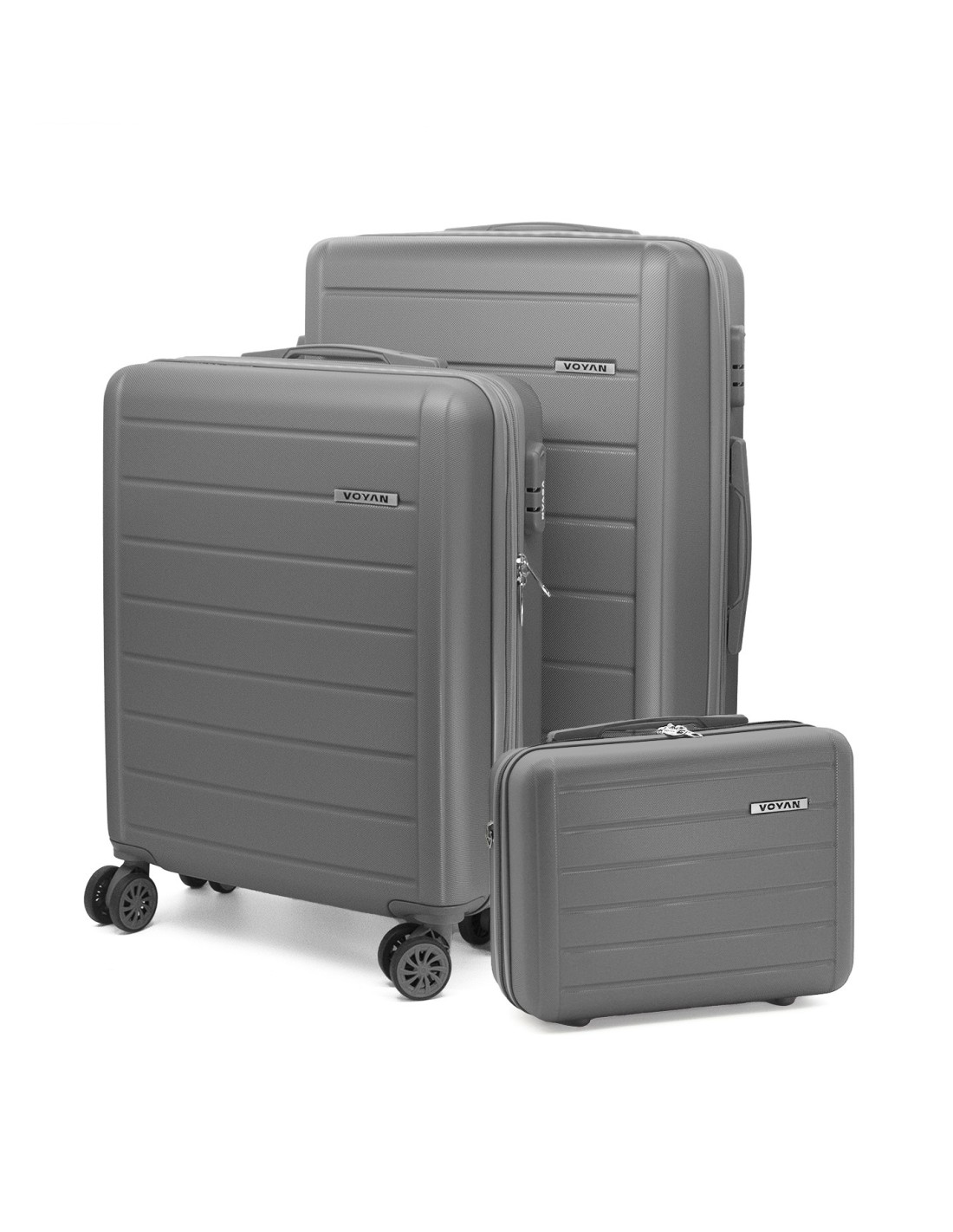 Voyan SDR Gris – Maleta de cabina + Maleta mediana + Neceser, rígidas y con cerradura de seguridad