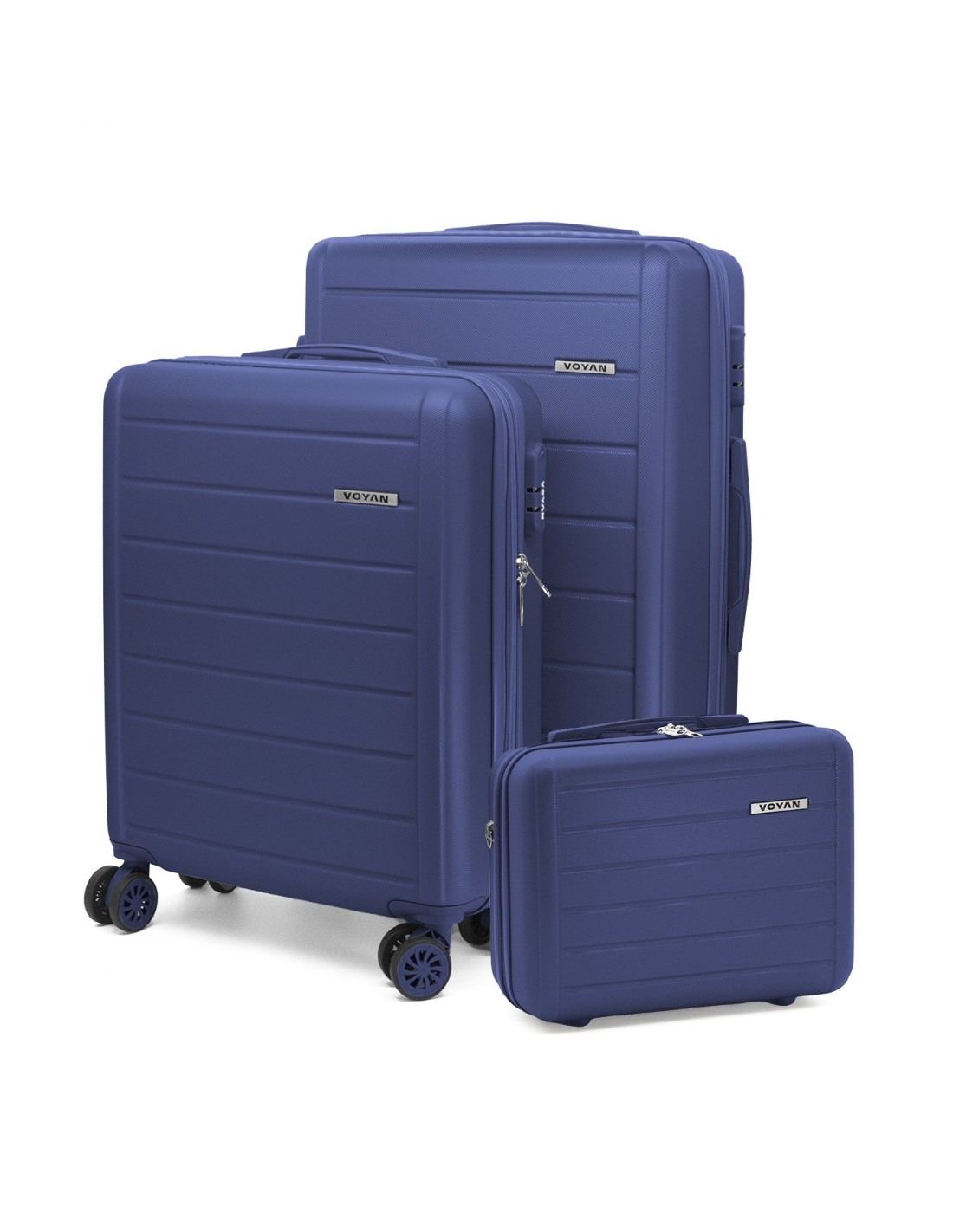 Voyan SDR Azul – Maleta de cabina + Maleta mediana + Neceser, rígidas y con cerradura de seguridad