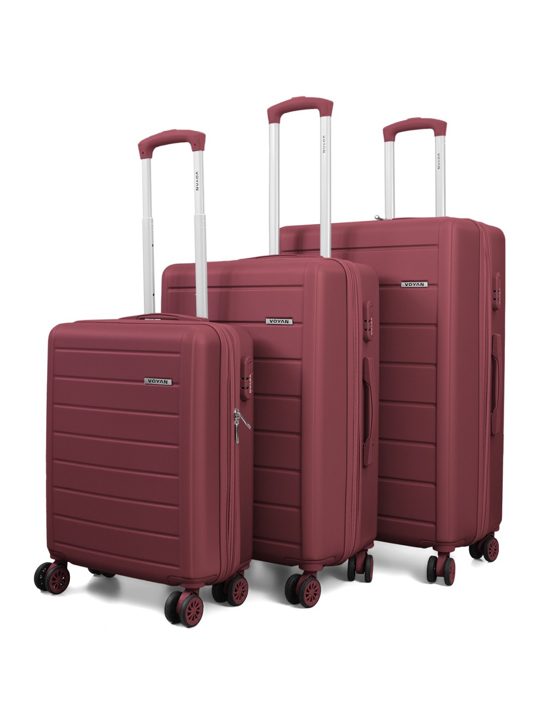Voyan SDR Granate – Maleta de cabina + Maleta mediana + Maleta grande, rígidas y con cerradura de seguridad