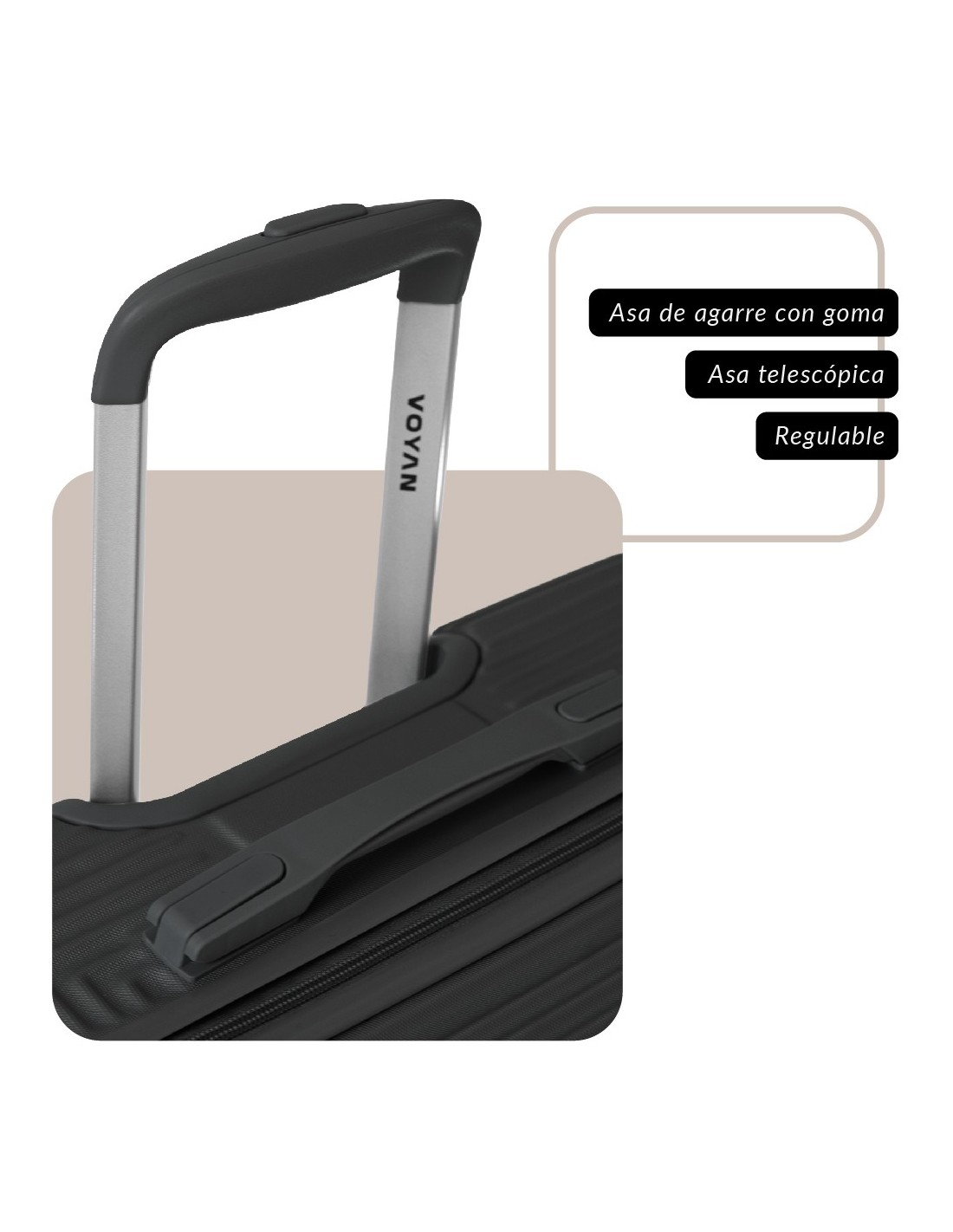 El juego de maletas y neceser VOYAN BIO está diseñada para quienes buscan viajar con estilo, comodidad y una calidad inteligente. Combina ligereza, resistencia y funcionalidad en un diseño moderno que se adapta a todo tipo de viajeros. Fabricada con carcasa rígida ABS Lightweight y estructura metálica, garantiza una protección superior frente a golpes y rayaduras, manteniendo un peso reducido para facilitar su transporte.