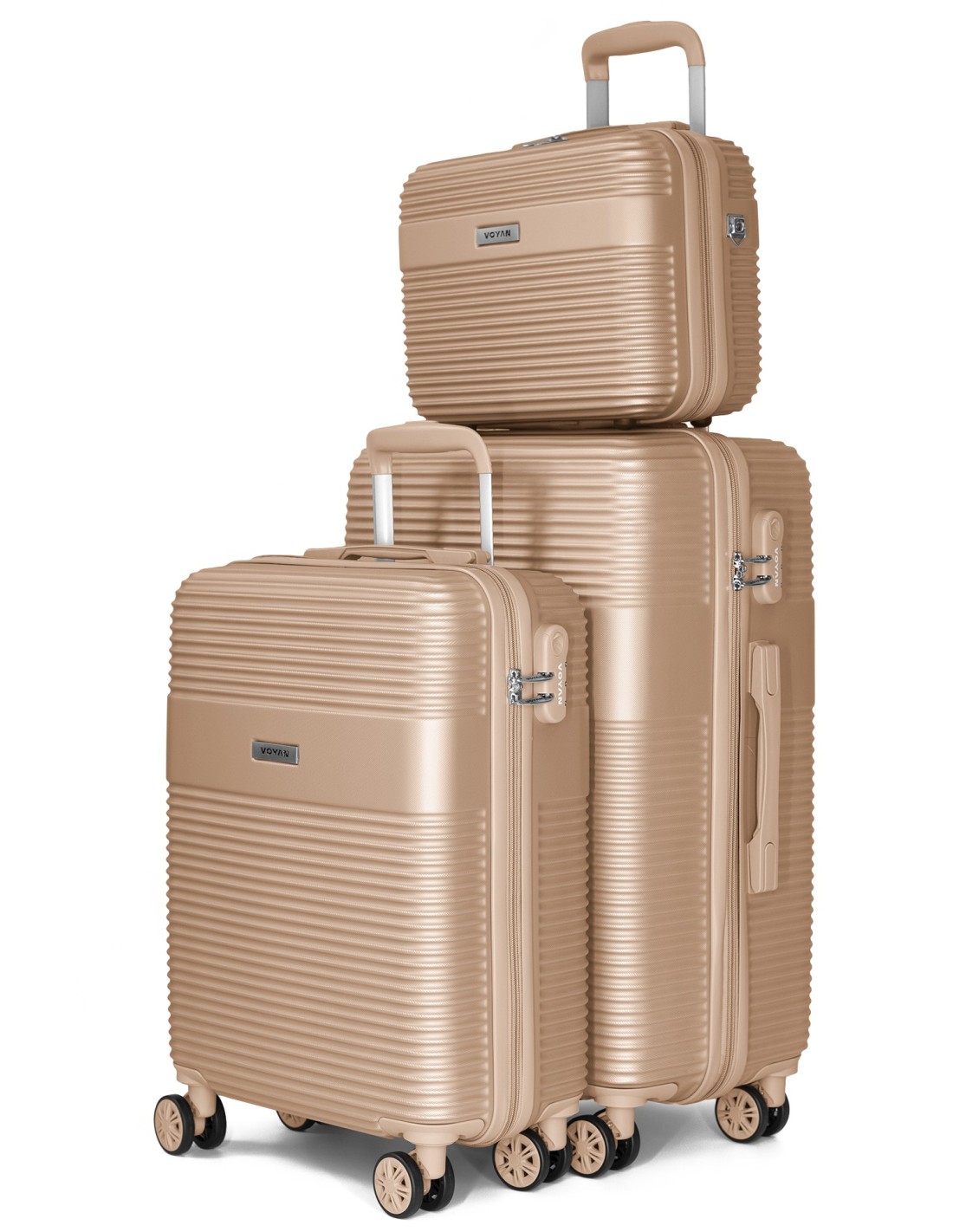 Voyan BIO Oro – Maleta de cabina + Maleta mediana + Neceser, rígidas y con cerradura de seguridad