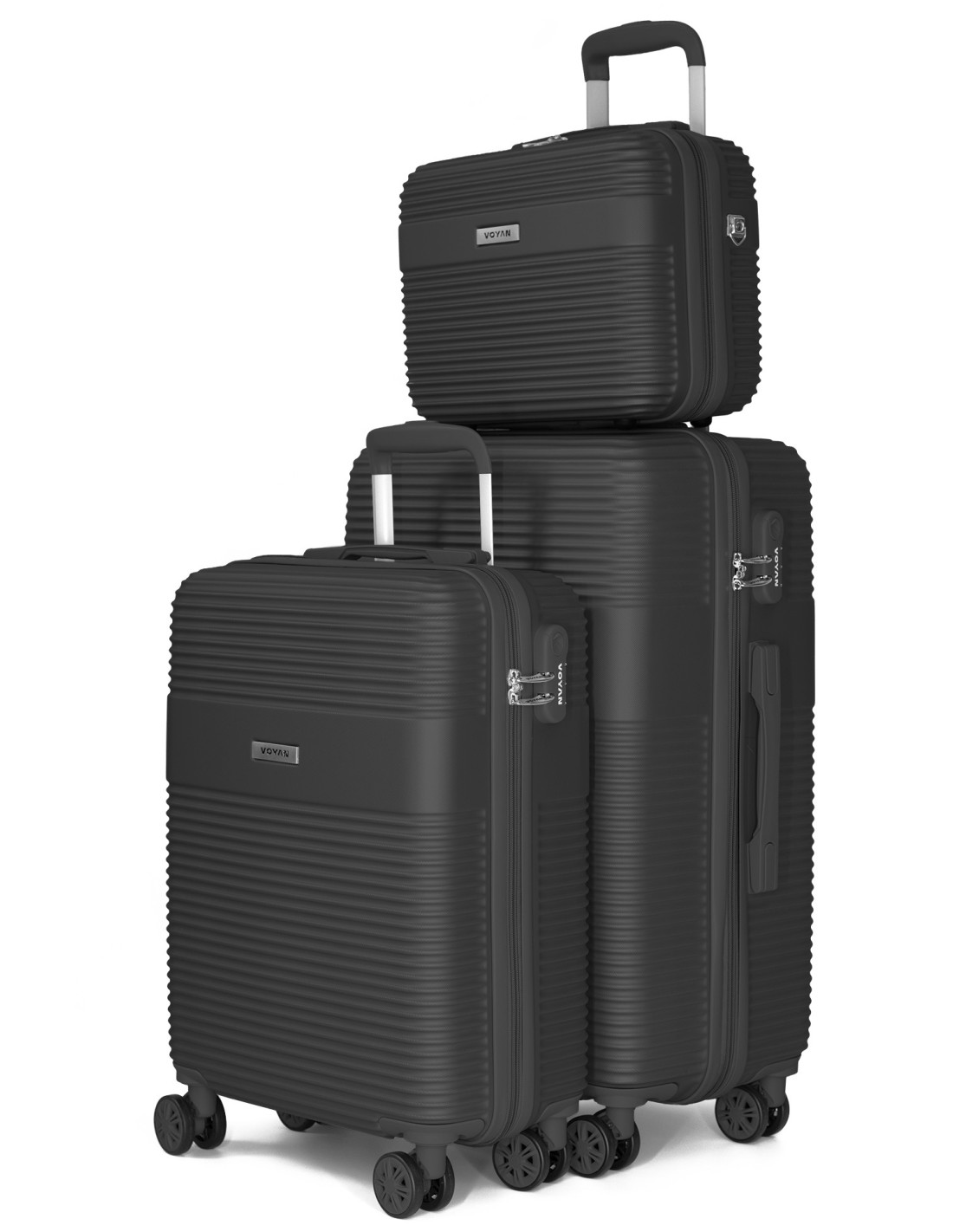 Voyan BIO Negro – Maleta de cabina + Maleta mediana + Neceser, rígidas y con cerradura de seguridad