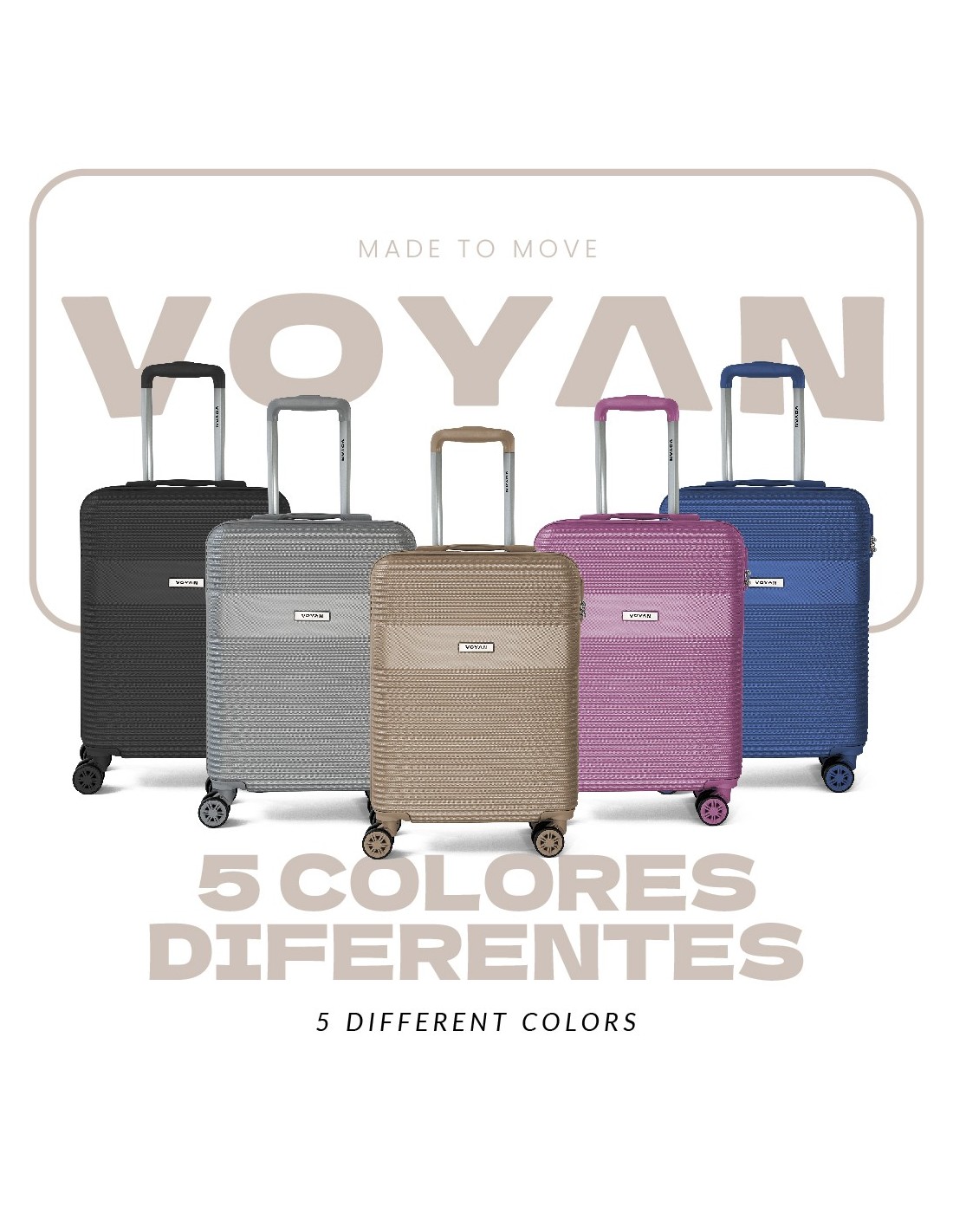 Disponible en cinco colores (negro, gris, azul, rosa y oro), el set de viaje Voyan BIO es el compañero ideal para cualquier escapada o viaje de trabajo: ligero, resistente y práctico, diseñado para mantener tus pertenencias organizadas, seguras y con espacio suficiente para todas tus compras.