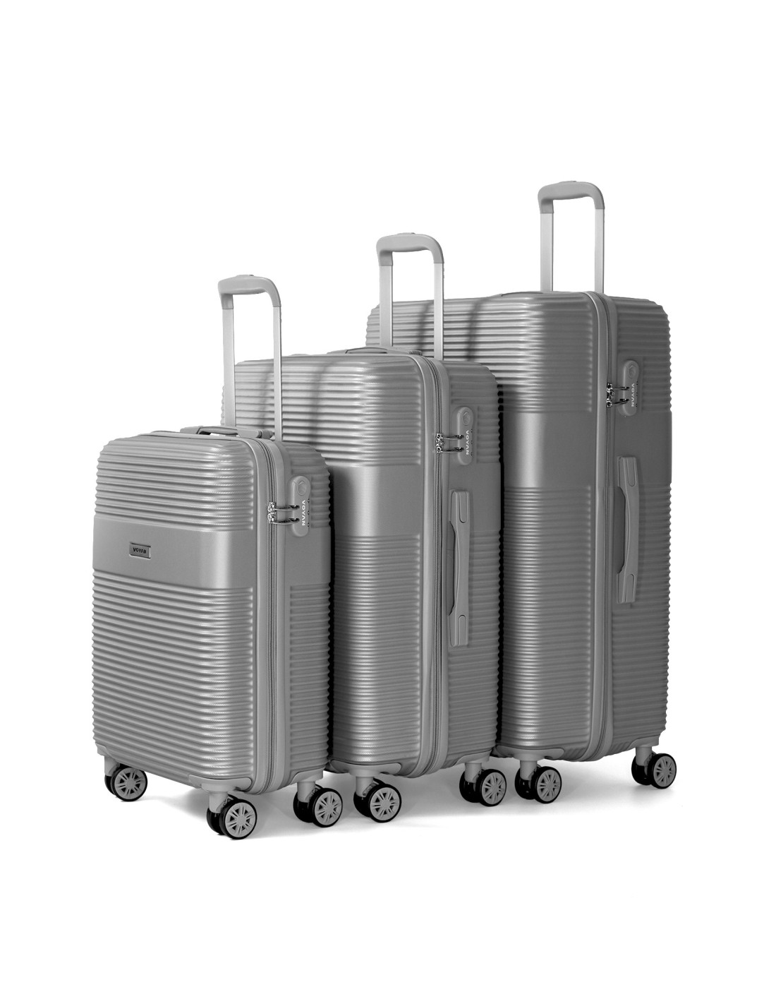 Voyan BIO Gris – Maleta de cabina + Maleta mediana + Maleta grande, rígidas y con cerradura de seguridad
