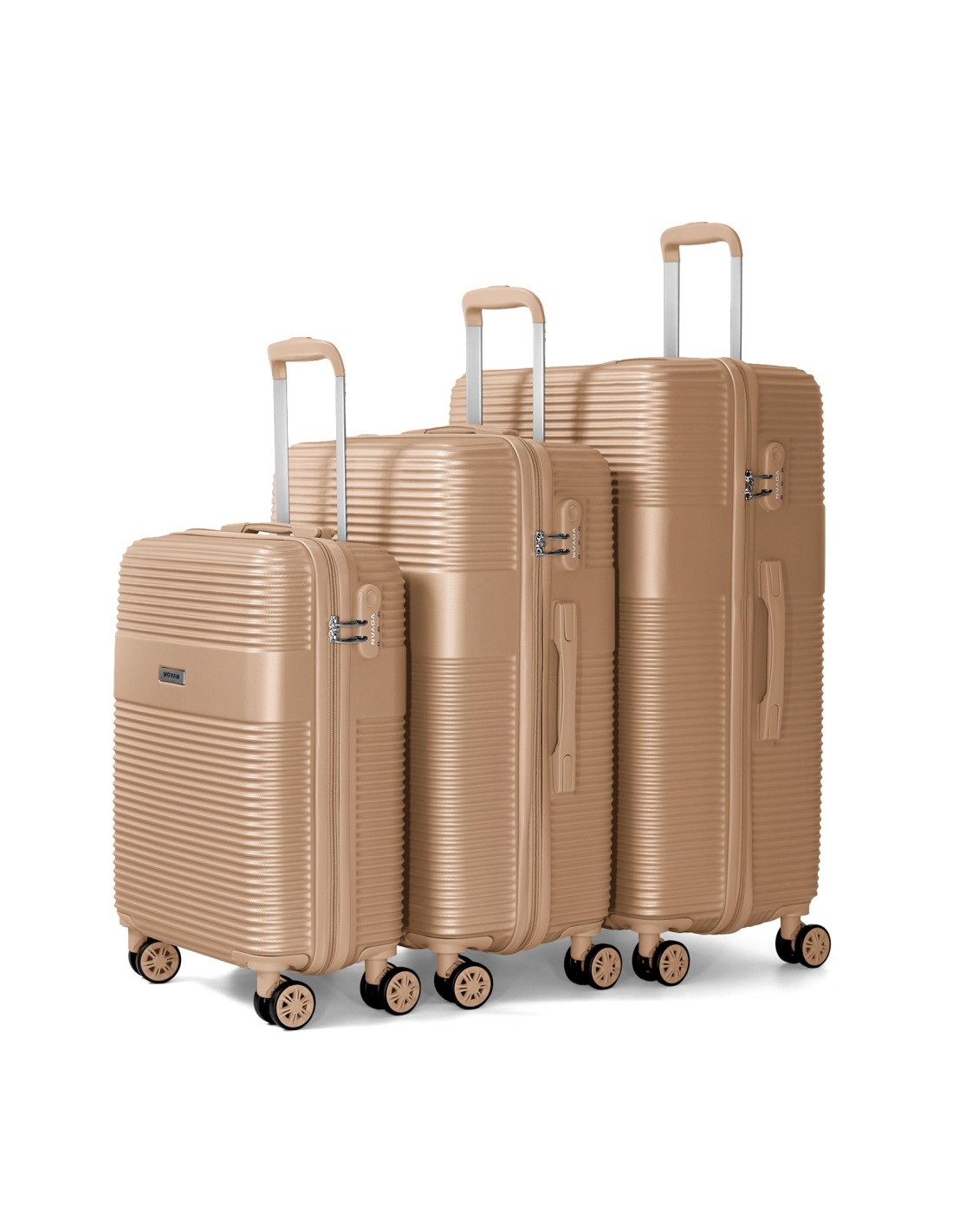Voyan BIO Oro – Maleta de cabina + Maleta mediana + Maleta grande, rígidas y con cerradura de seguridad