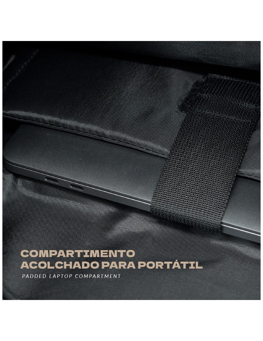 Su sistema Roll Top permite adaptar el volumen según la carga, manteniendo siempre un diseño compacto y equilibrado. En el interior incorpora un compartimento amplio y un bolsillo acolchado para ipad oportátiles de 13”, lo que la convierte en una opción versátil para oficina, universidad o viajes cortos.