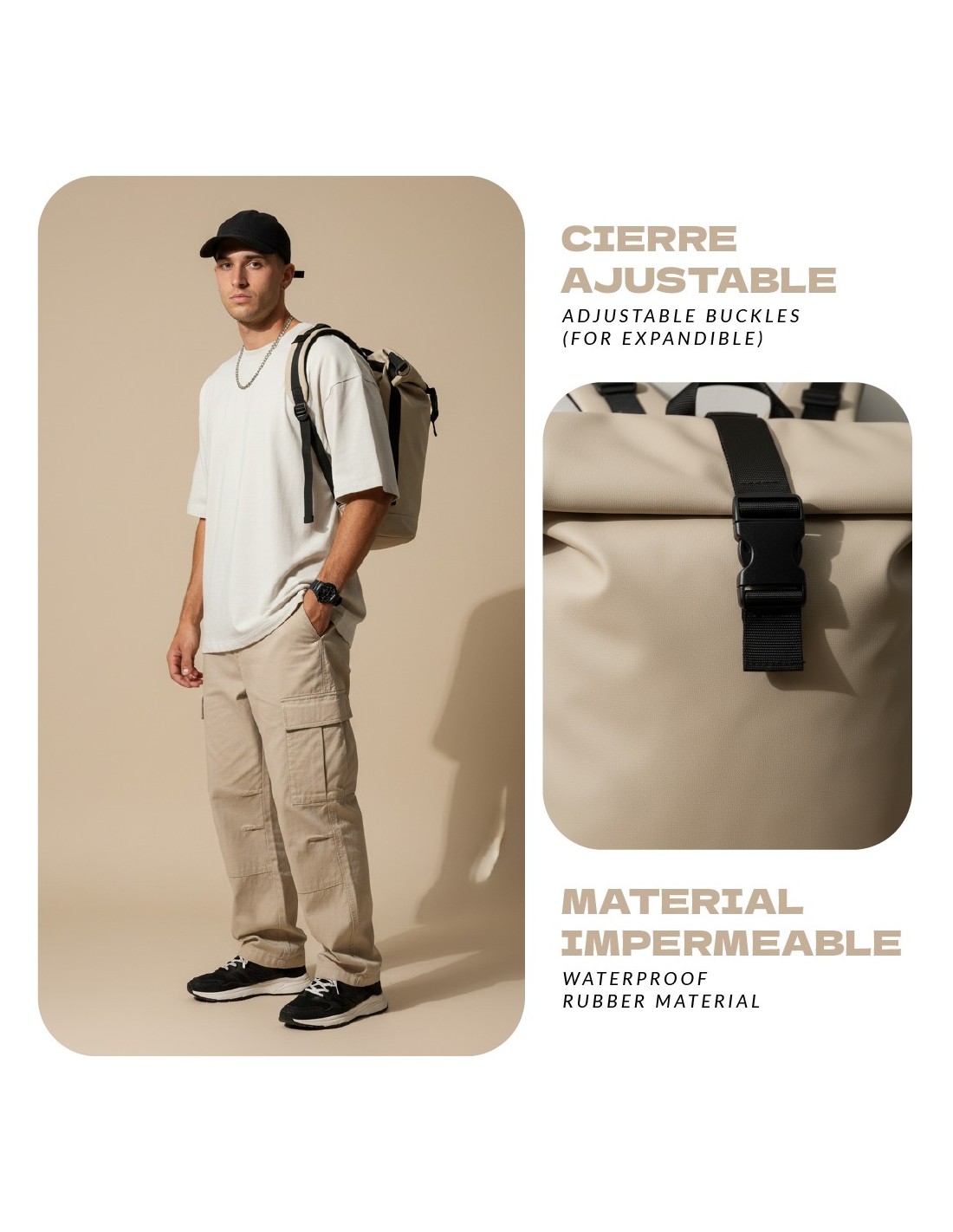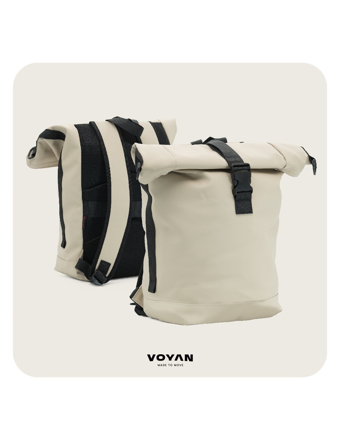 Mochila Enrollable Voyan TUN Beige – Impermeable, Ligera y PVC Engomado